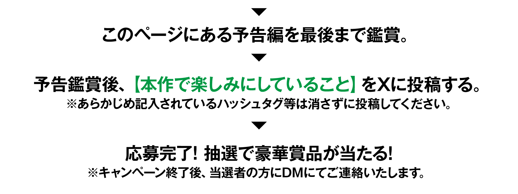- ※ダイレクトメッセージを受信拒否設定している場合、当選連絡をすることができないため、応募対象外となります。