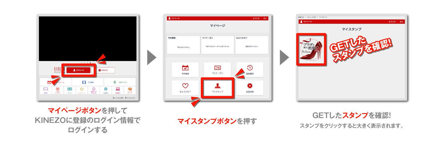 • ※本スタンプは、オンライン予約《KINEZO》もしくは《キネパス》を利用してのチケット予約・購入により発行されるものです。