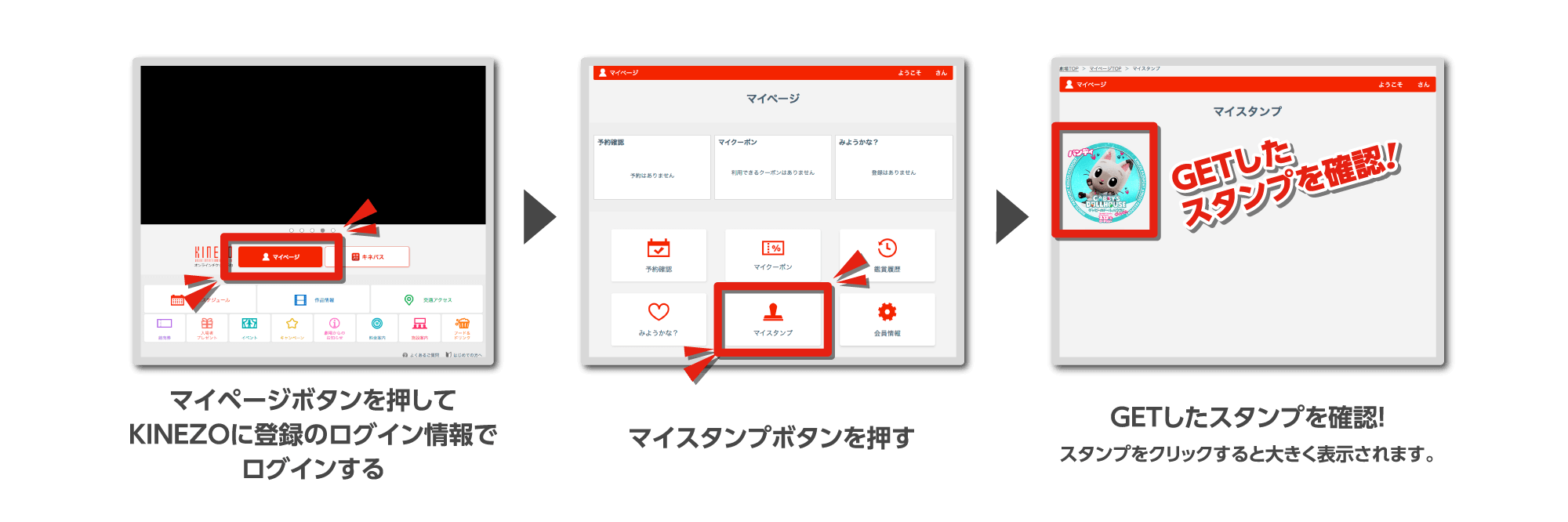 - ※本スタンプは、オンライン予約《KINEZO》もしくは《キネパス》を利用してのチケット予約・購入により発行されるものです。