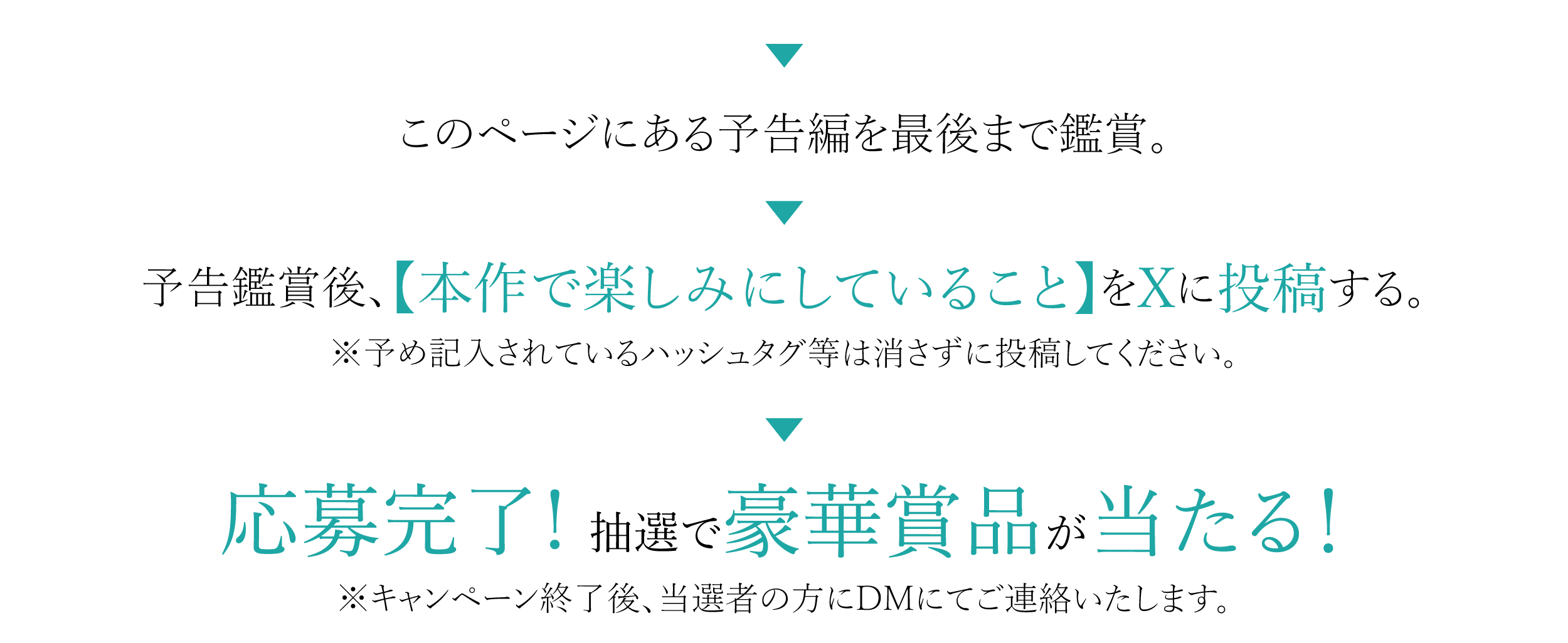- ※ダイレクトメッセージを受信拒否設定している場合、当選連絡をすることができないため、応募対象外となります。
