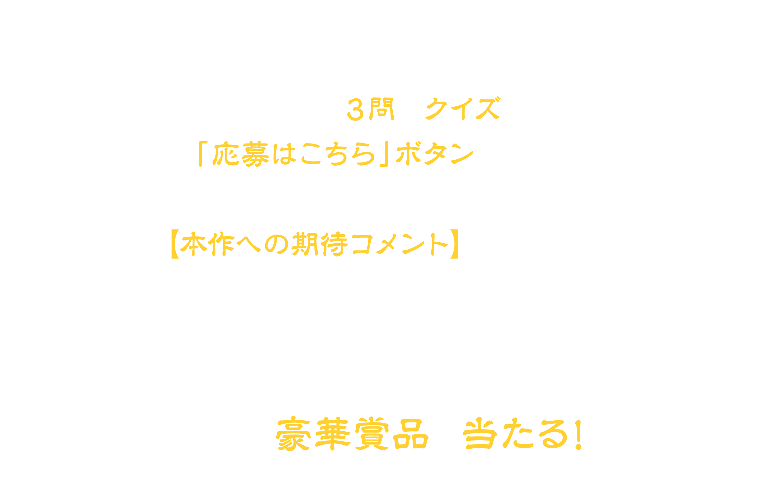 - ※当選者の長期不在や、賞品お届け先ご住所や転居先が不明等の理由により、賞品のお届けができない場合は、ご当選を無効とさせていただく場合がありますので、予めご了承ください。
