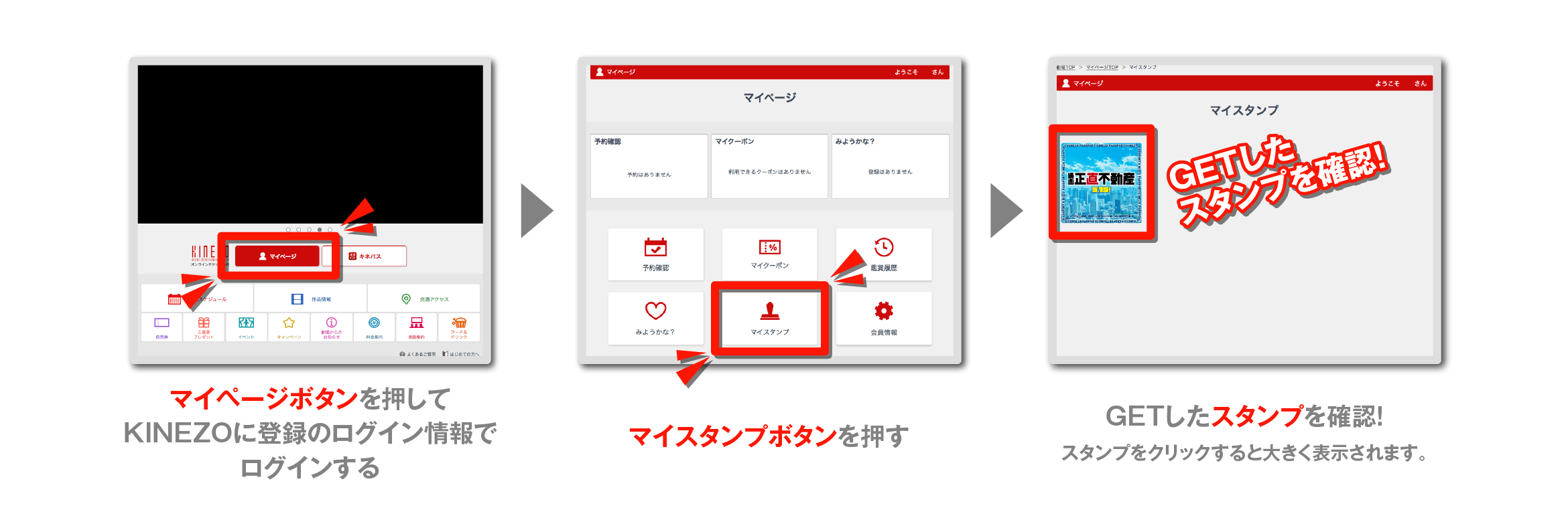 - ※本スタンプは、オンライン予約《KINEZO》もしくは《キネパス》を利用してのチケット予約・購入により発行されるものです。