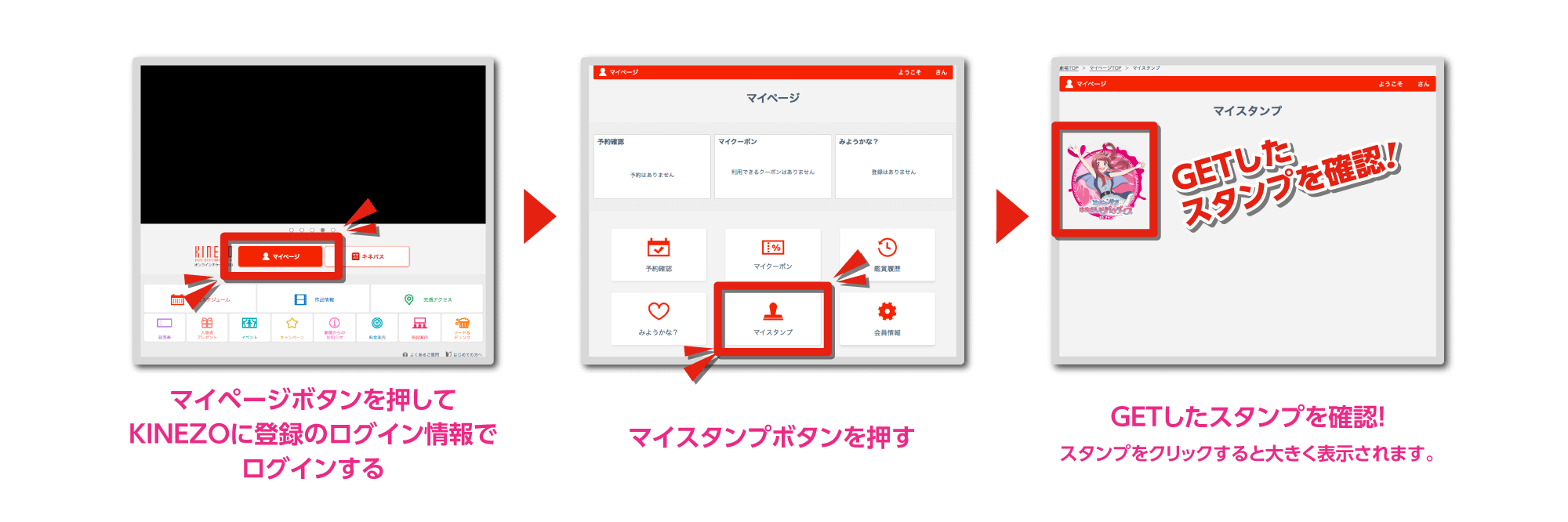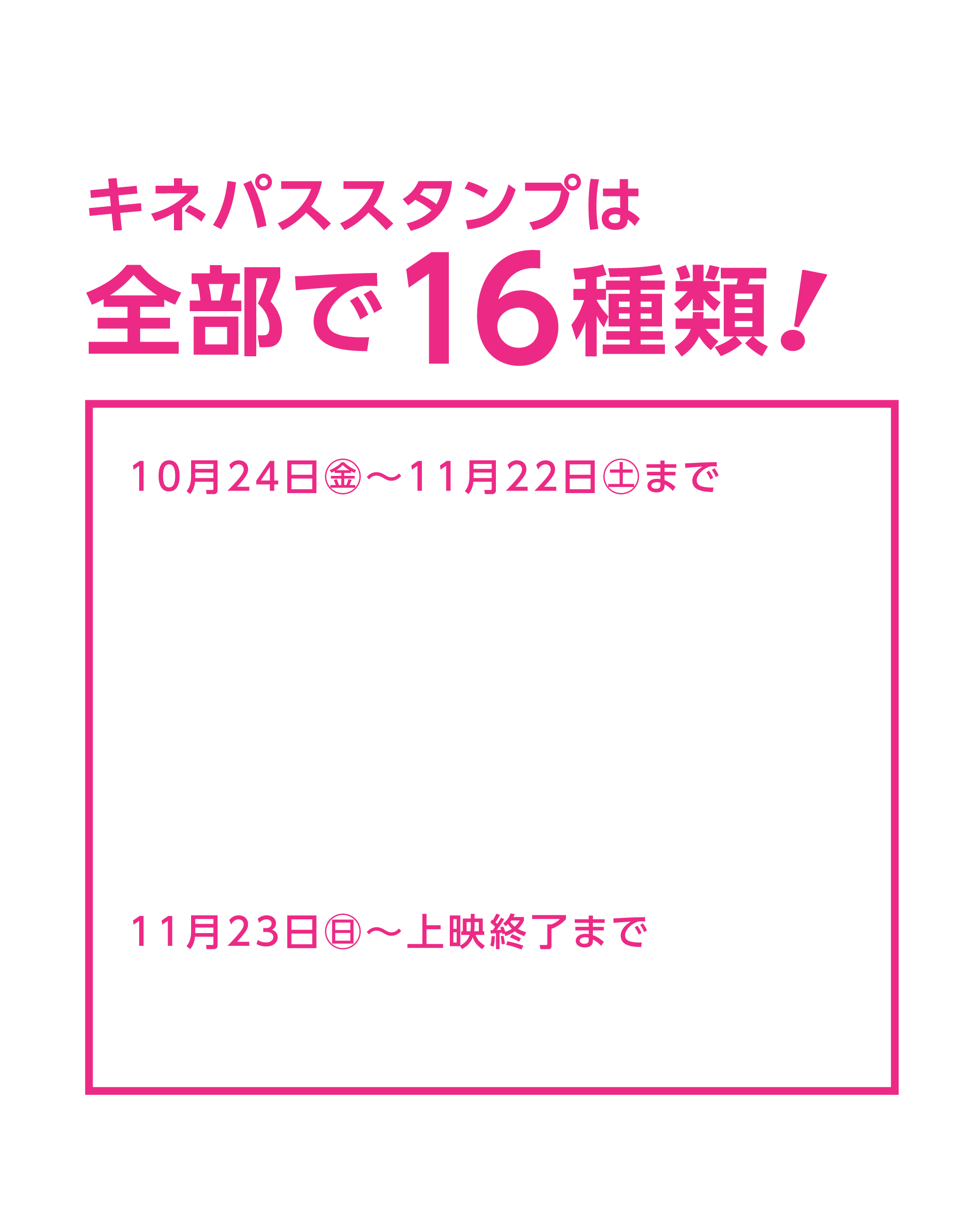 - ※本スタンプは、オンライン予約《KINEZO》もしくは《キネパス》を利用してのチケット予約・購入により発行されるものです。