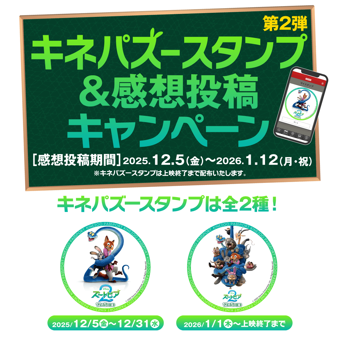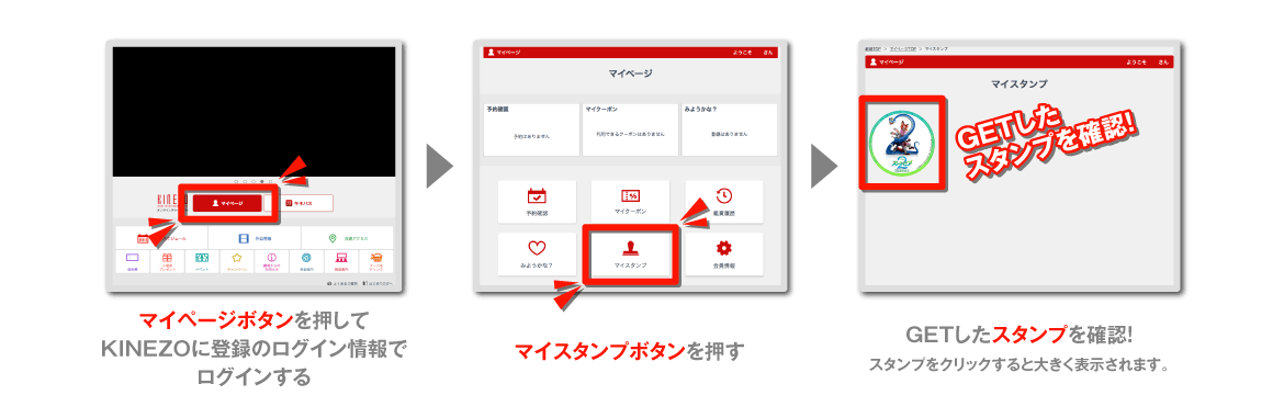 - ※本スタンプは、オンライン予約《KINEZO》もしくは《キネパス》を利用してのチケット予約・購入により発行されるものです。
