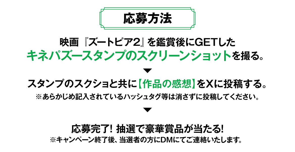 - ※当選発表は、ダイレクトメッセージの当選連絡をもって代えさせていただきます。