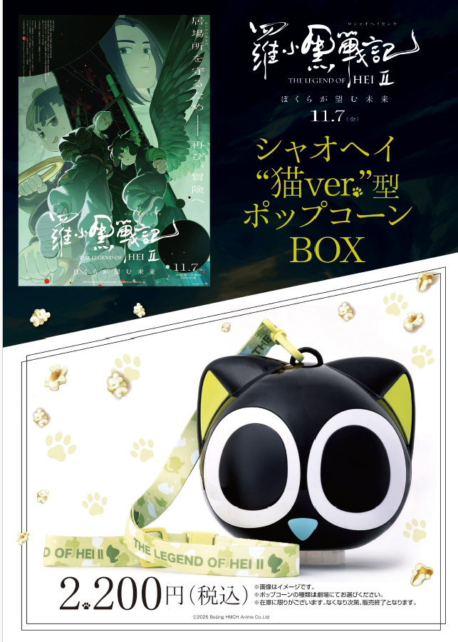 11/7(金)~販売開始「羅小黒戦記2」シャオヘイ猫verポップコーンBOX 購入制限お1人様一会計につき2点まで