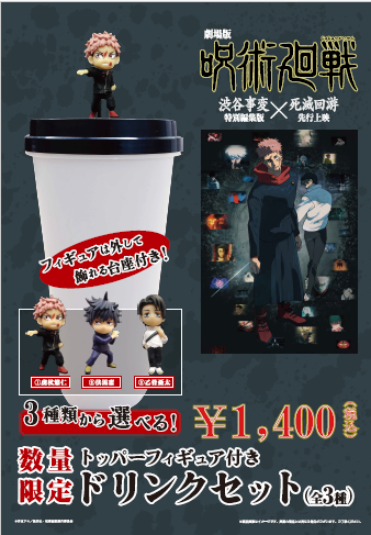 11/7(金)~販売開始「呪術廻戦 渋谷事変×死滅回遊」トッパーフィギュア付きドリンクセット 購入制限お1人様一会計につき3点まで