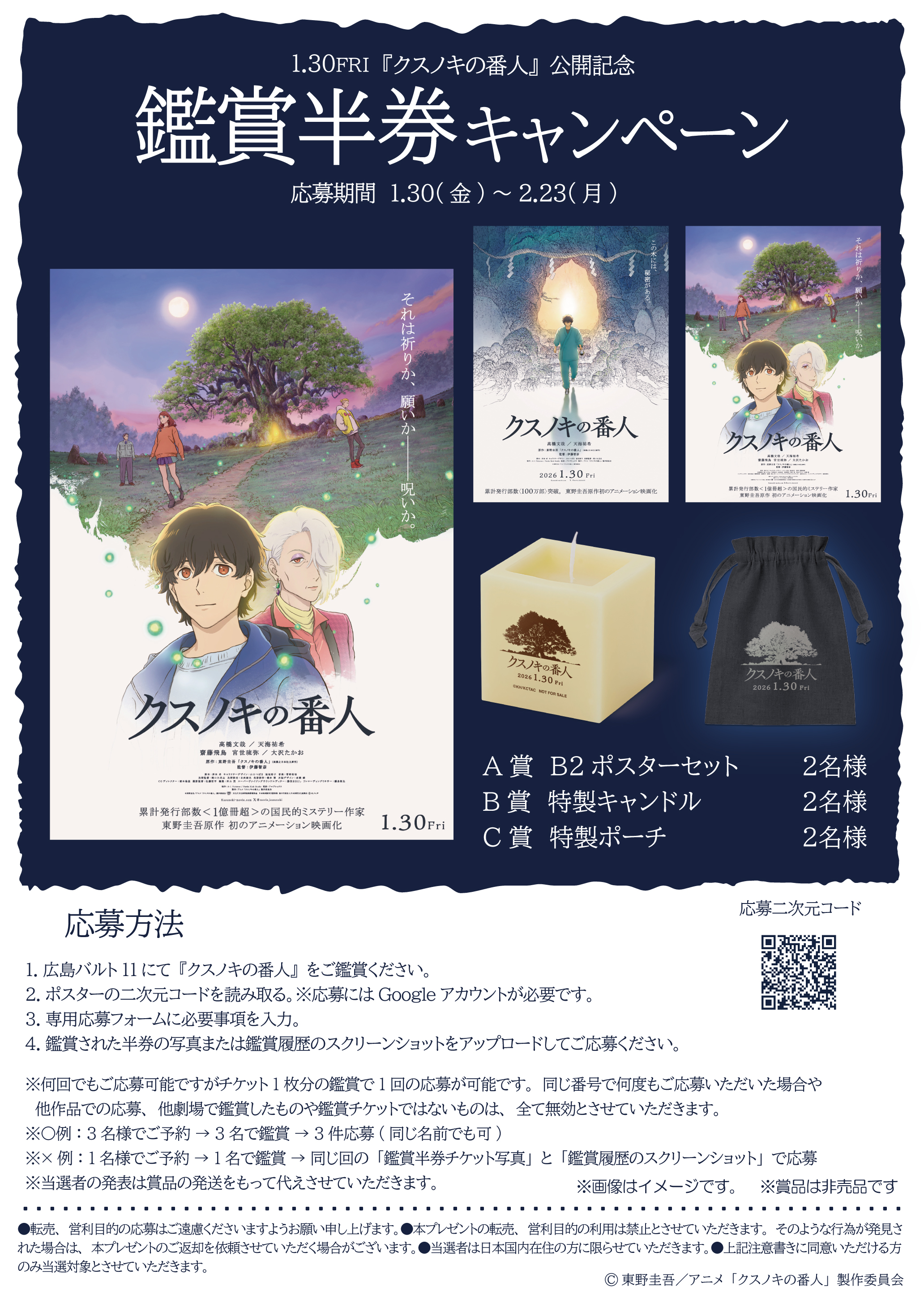 1/30(金)公開『クスノキの番人』の公開を記念し、鑑賞者限定のプレゼントキャンペーンを実施いたします。