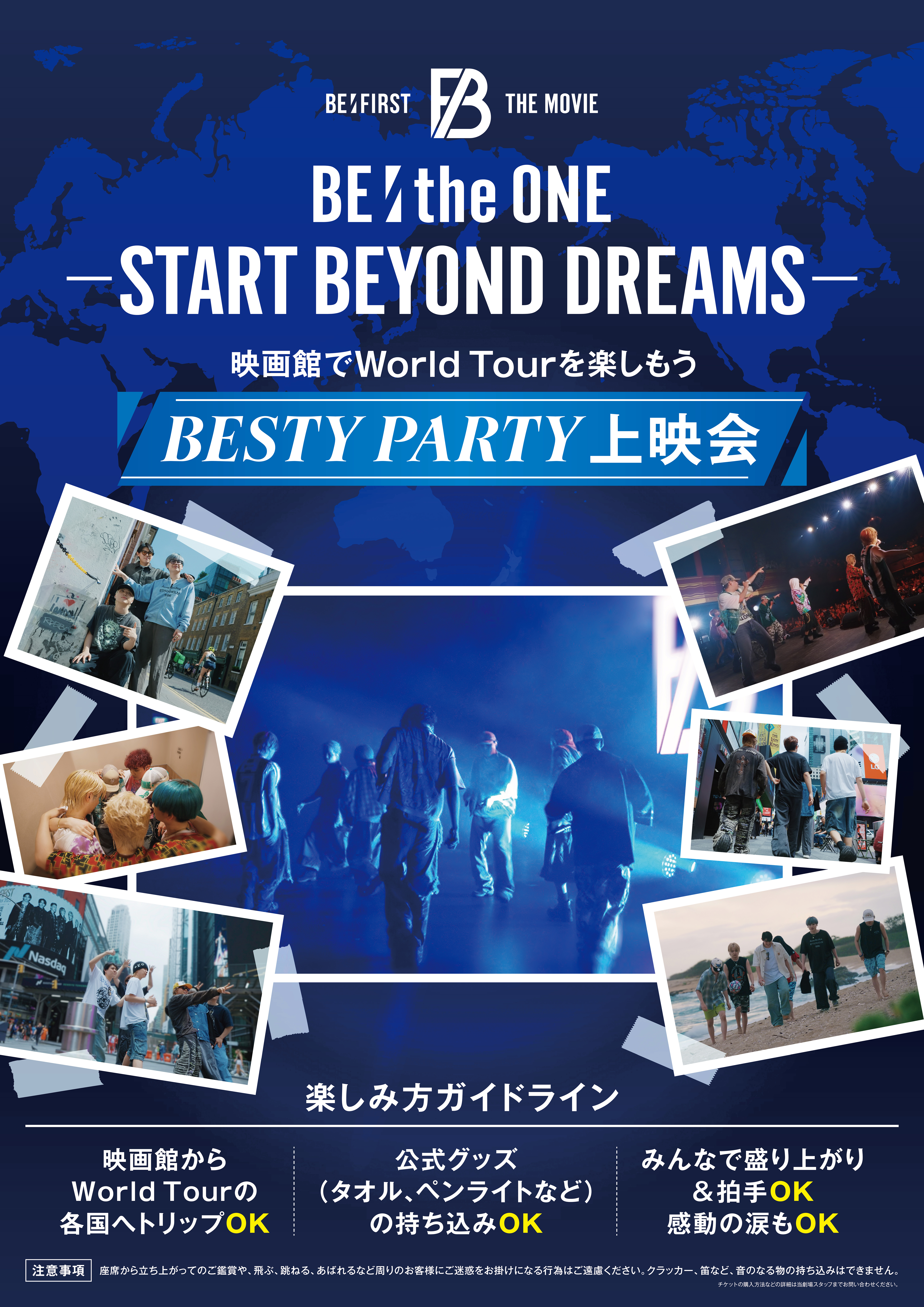 この度、前作でも大好評を博した特別上映会が今作では、「BESTY PARTY上映会」として全国での開催が決定しました!特別上映会は、通常上映とは異なり、グッズや声援、歓声、拍手、手拍子OK!更に、映画館にいながらにして、BE:FIRSTのWorldTour 各国へトリップ!現地の空気感と共にロケーションを楽しみ、二度とない初のWorldTourの迫力あるパフォーマンスを会場さながらの臨場感で会場一体となって体感いただける参加型の特別イベントになります。