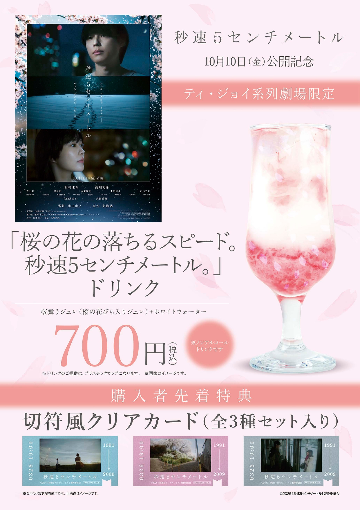 【完売御礼!】「桜の花の落ちるスピード。秒速5センチメートル。」ドリンク ■700円 ■特典:切符風クリアカード(全3種セット)