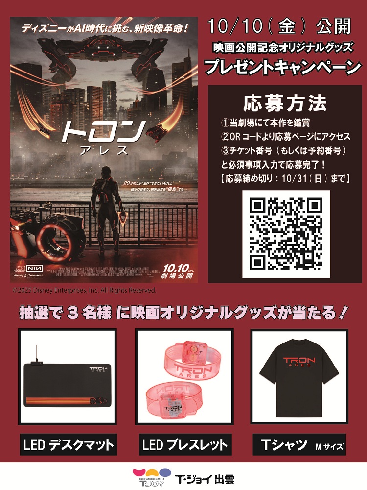 AIプログラムの実体化によって誕生した、AI兵士アレス。“彼”は圧倒的な力と優れた知能を備えた究極の兵士だが、AI兵士が現実世界で“生存”できるのはわずか29分間だった。やがて “永遠”を求めてAI兵士たちは暴走を開始し、デジタル世界が現実世界を侵食していく。だが、世界滅亡の危機の中で、人間を知ったアレスにある“異変”が起こる。彼は人類を滅ぼすのか?それとも…?デジタル世界と現実世界が鮮やかに交差する、圧倒的なスケールのデジタル・バトルアクション。ディズニーがAI新時代に挑む、驚異の“侵食系”デジタル映画体験がここに!