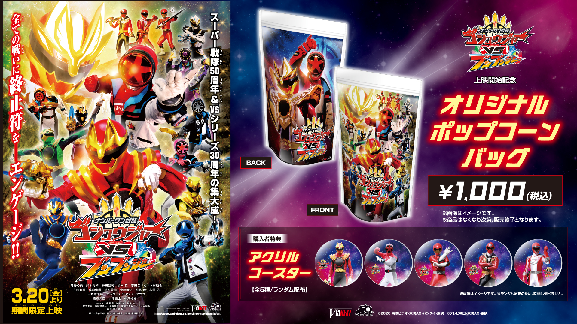 Vシネクスト『ナンバーワン戦隊ゴジュウジャーVSブンブンジャー』アクリルコースター付きポップコーンバッグ※おひとりさま一会計につき2点まで